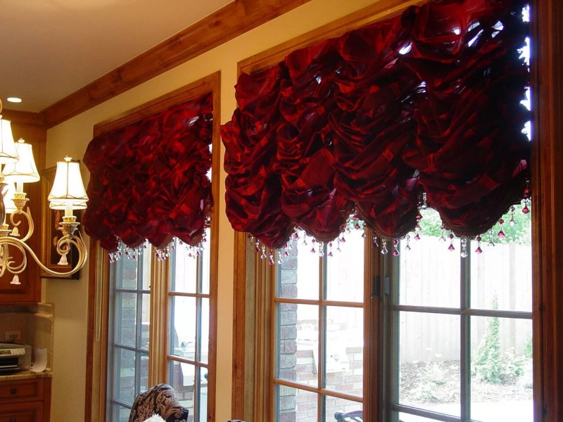 Существуют некоторые разновидности французских штор. Так они бывают с подъемным механизмом и без него. В первом случае ткань можно легко поднять или опустить, а во втором этого сделать не удастся.